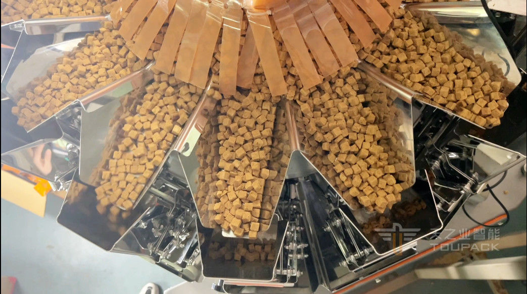 เครื่องบรรจุผลไม้แห้งแบบอัตโนมัติ เครื่องบรรจุตั้ง ความเร็วสูง 120BPM เครื่องชั่งและบรรจุปังที่ฉลาด